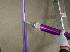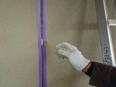 | シーリング工事です。シーリング材打設です。 | シーリング工事です。シーリング完了です。 | 外壁工事です。下塗り作業(1回目)です。 |