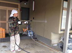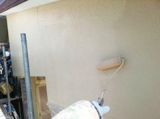 | 外壁工事です。上塗り作業(1回目)です。 | 外壁工事です。上塗り作業(2回目)です。 | 外壁工事です。上塗り作業(3回目)です。 |
