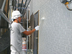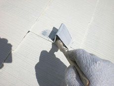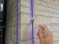 | コーキング工事の様子です。既存シール撤去後、プライマーを塗ります。 | コーキング工事の様子です。新しいコーキング材を充填していきます。 | コーキング工事の様子です。コーキング作業が完了しました! |