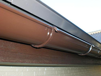 | 付帯部分塗装の様子です。樋塗装(1回目)を行います。 | 付帯部分塗装の様子です。樋塗装(2回目)が完了しました。 |