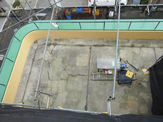 | 防水工事:ウレタン防水工事の様子です。 | 防水工事:柱部根巻き部 防水処理の様子です。 | 防水工事:ウレタン防水工事完了です。 |