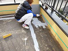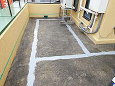 | 付帯部:竪樋つなぎ部補修の様子です。 | 防水工事:工事前の様子です。 | 防水工事:プライマー処理の様子です。 |