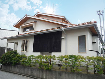 | 付帯部:雨軒裏 1回塗りです。日本ペイント ケンエースG-Ⅱを使用しています。 |