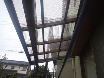 付帯部:ベランダ下庇屋根上塗りです。2回目 日本ペイント ファインシリコンフレッシュを使用しています。 |