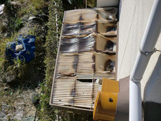付帯部:伏せ板水切りケレン後→ 錆び止め塗装です。日本ペイント ハイポンプライマーⅡを使用しています。 |