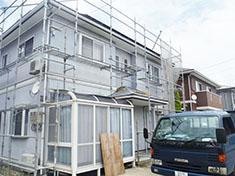 外壁の中塗りをしています。EC-200F(85-50P)を使用します。 |