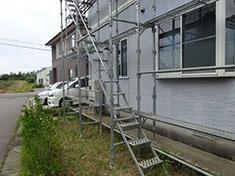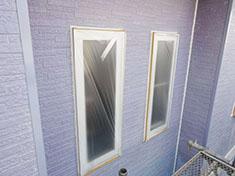 | 外壁に養生シートを張ります。窓などはしっかり防ぎます。 |