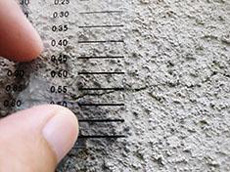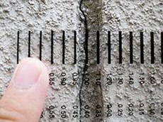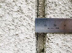 | 現場調査:窓廻りのコーキングの劣化と補修跡が見られます。 | 現場調査:外壁モルタル部にヒビ割れ発生(割れ幅0.55mm)です。 | 現場調査:目地モルタル部にヒビ割れ発生(割れ幅1.00mm)です。 |