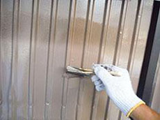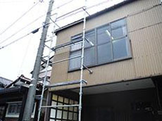 | 施工前の全景です。 | 施工前の外壁(鋼板)です。 | 施工前の外壁(鋼板)です。 |