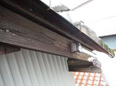 | 施工前の小庇です。 | 施工前の外階段です。 | 施工前の軒天です。 |