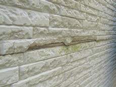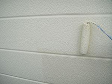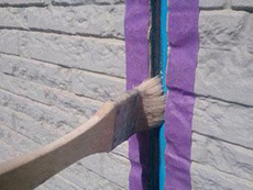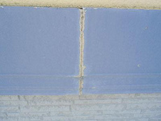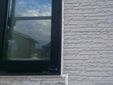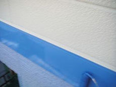 | コーキング:コーキング完了です。 | 下部外壁塗料:アステック EC-2000Fブルーグレイ(9017)を使用しています。 | 下部外壁:下塗り作業です。 |