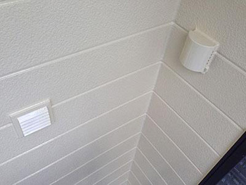 | 施工後の外壁の様子です。 | 施工後の軒天の様子です。 |