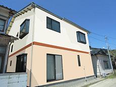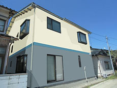 | 施工後の外壁ボーダーの様子です。 | 施工後の外壁の様子です。 |