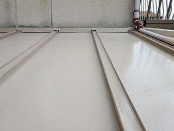 下屋根:上塗り1回目の様子です。アステック シリコンフレックスJY(19-60D)を使用しています。 |