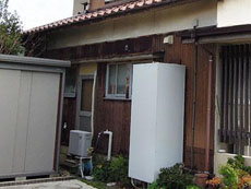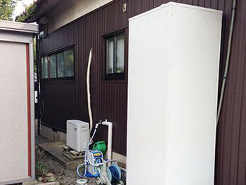 | 外壁:設置されていたエコキュート裏も張り替えるため、エコキュートの脱着を行いました。 |