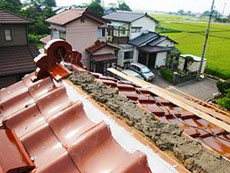 屋根:棟瓦積みの様子です。 |
