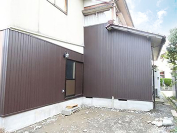 | 外壁:既存の板金を撤去後、防水シートを張ります。 |