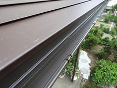 屋根:ポーチ屋根の雨樋交換前の様子です。 |