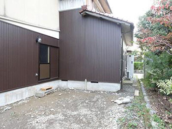 | 勝手口:外壁の板金を撤去していきす。 |