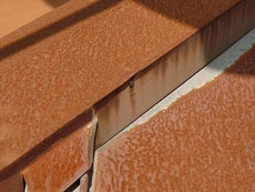 下屋根:綺麗に錆びを落としフラットにしたあと、下塗り(錆び止め)をします。 |