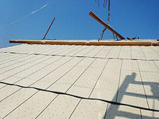 | 屋根:既存瓦撤去後、ルーフィングを張りました。※ルーフィングとは屋根の防水のために瓦などの下に施工するシート状の建材のことです。 |