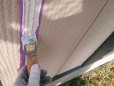 | 外壁:下塗り作業です。ニッペ パーフェクトサーフを使用しています。 |