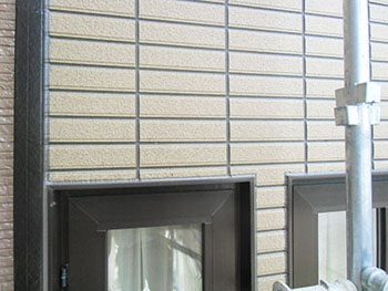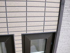 | 施工後の全景の様子です。温かみのある雰囲気です。 | 施工後の外壁コーキング部分です。 |