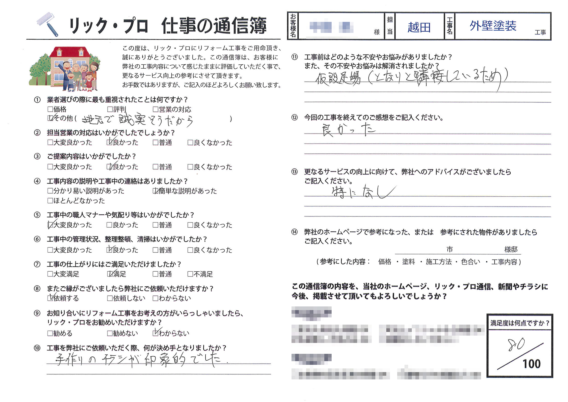 金沢市押野 外壁塗装工事のお客様