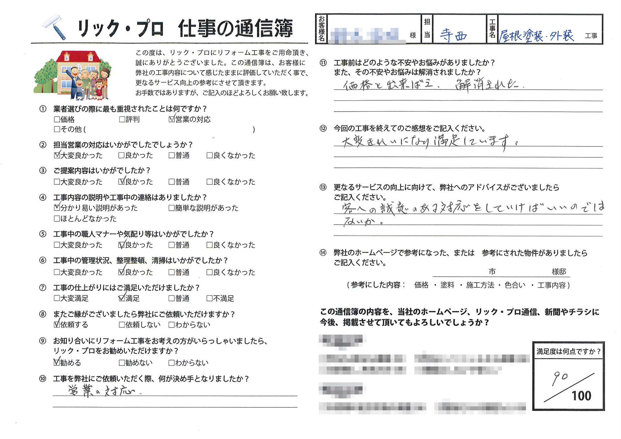 金沢市常磐町 屋根・外壁塗装、一部タイル貼り工事 S様の声